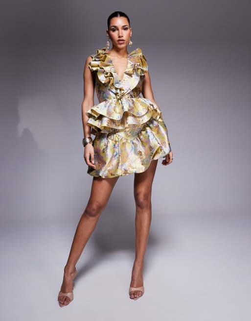 Minifalda con bajo abullonado de jacquard de ASOS LUXE