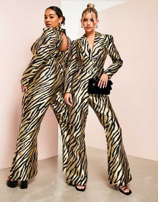 Mono de sastre largo con estampado de cebra de jacquard de ASOS LUXE