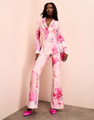 Pantalones de traje rosas con estampado floral de ASOS LUXE (parte de un conjunto)