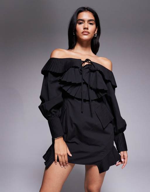 Vestido corto negro con solapas de ASOS LUXE