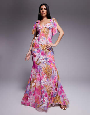Vestido largo con estampado floral y abalorios de ASOS LUXE