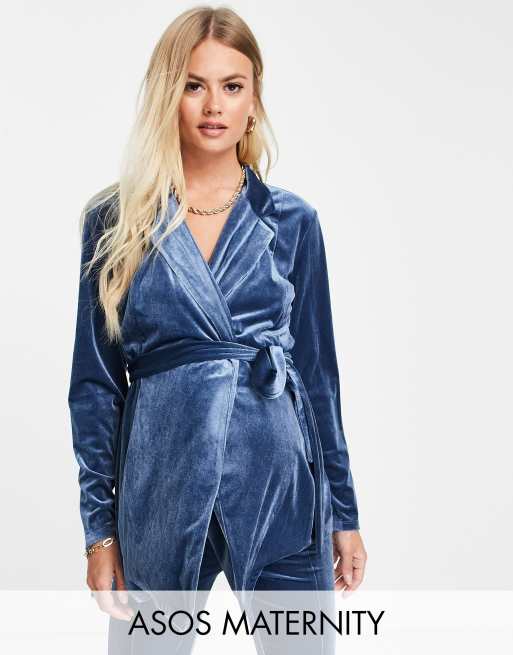 Americana de traje azul cruzada de terciopelo de ASOS DESIGN Maternity
