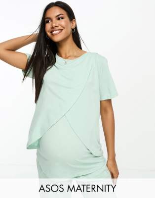 Camiseta de pijama verde salvia con diseño para lactancia de algodón Mix & Match exclusivo de ASOS DESIGN Maternity