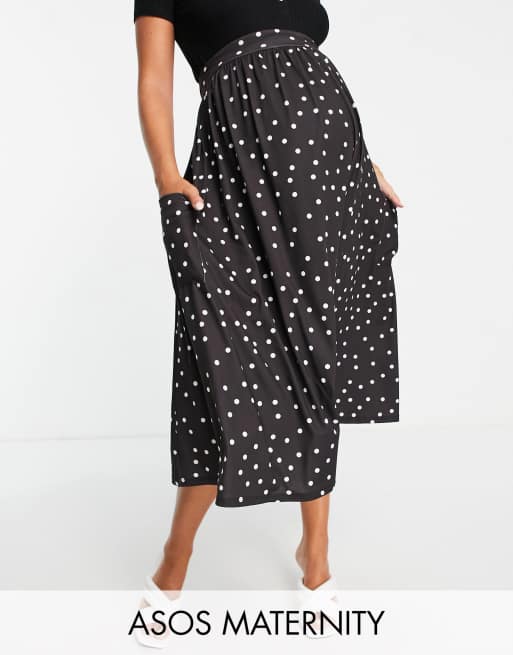 Falda midi con estampado de lunares monocromático y detalle de bolsillo de ASOS DESIGN Maternity