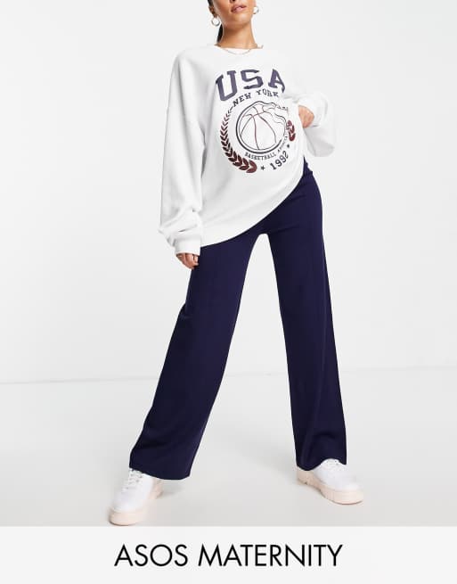 Pantalones azul marino de pernera ancha con detalle de costura en la parte delantera de punto de ASOS DESIGN Maternity (parte de un conjunto)