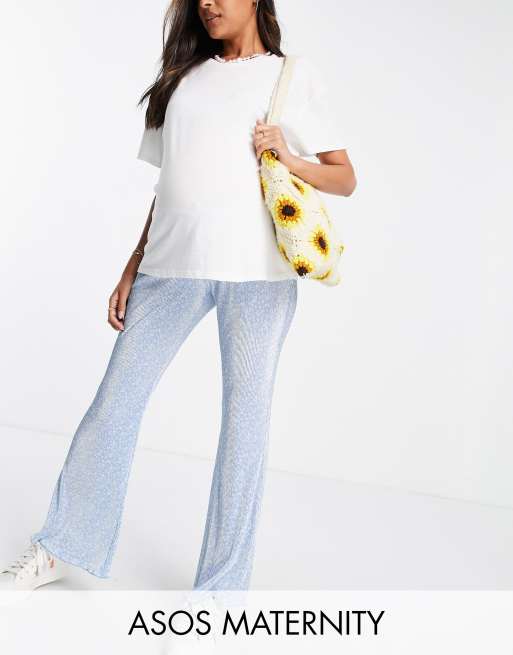 Pantalones azules de campana plisados con banda por debajo del vientre y estampado de florecitas de ASOS DESIGN Maternity