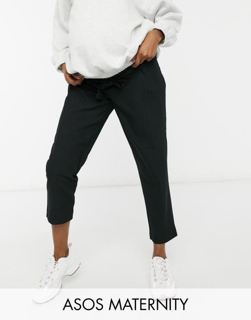 Pantalones tapered tobilleros con diseño de sastre y lazada debajo del vientre de ASOS DESIGN Maternity