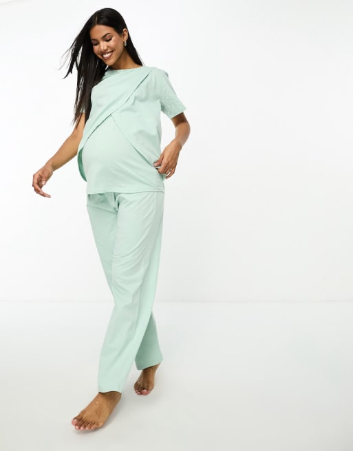 Pijama verde salvia de algodón Mix & Match de ASOS DESIGN Maternity