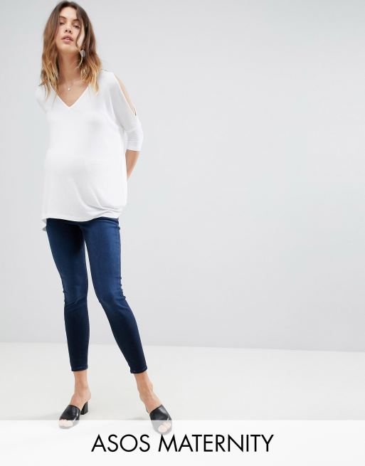 Vaqueros ajustados de talle alto con lavado negro azulado y cinturilla por debajo del vientre Ridley de ASOS DESIGN Maternity