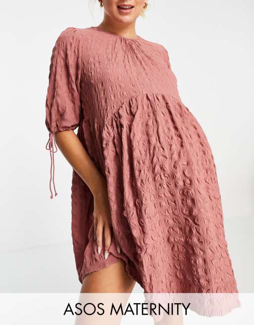 Vestido corto rosa de corte amplio con lazadas y acabado texturizado de ASOS DESIGN Maternity