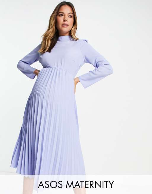 Vestido midi azul aciano plisado con cuello alto de ASOS DESIGN Maternity