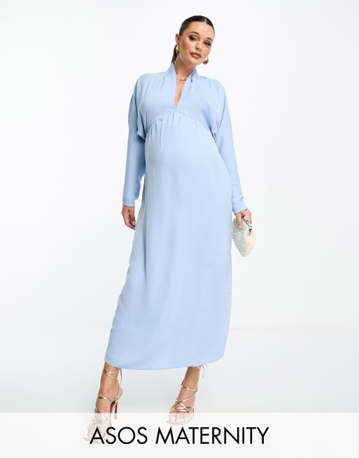 Vestido midi azul pálido escotado con mangas murciélago de ASOS DESIGN Maternity