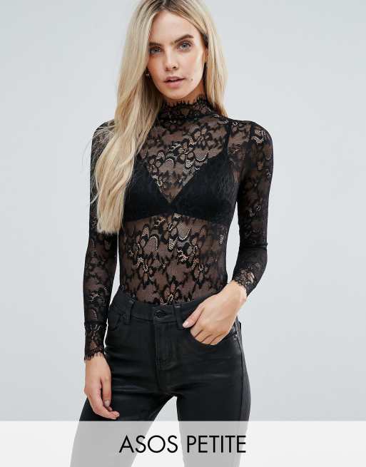 Body de encaje de cuello alto Megan de ASOS PETITE