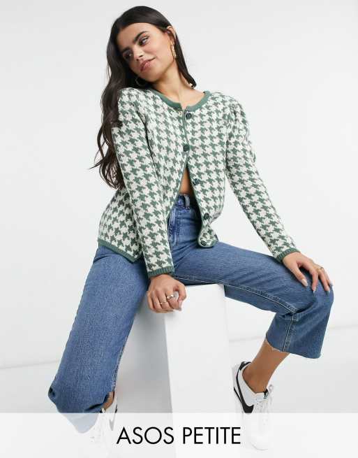 Cárdigan verde con estampado de pata de gallo de ASOS DESIGN Petite (parte de un conjunto)