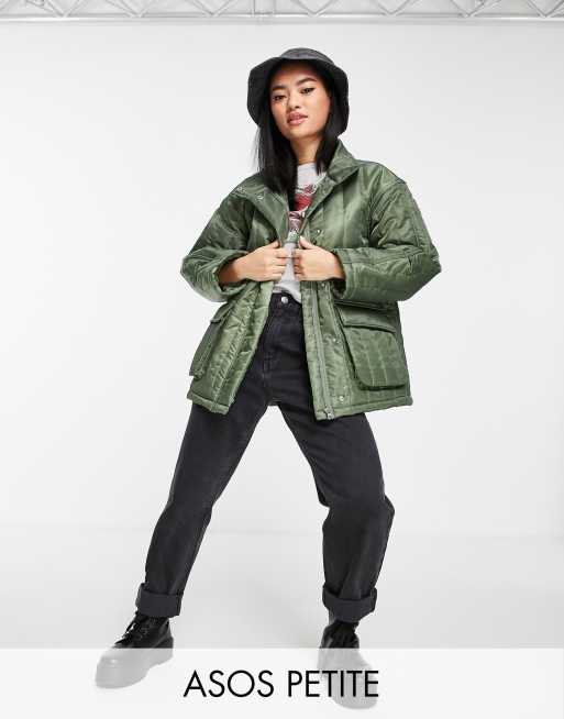 Chaqueta caqui oscuro guateada con diseño lineal de nailon de ASOS DESIGN Petite