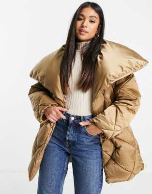 Chaqueta de plumas color bronce estilo cascada con cinturón y diseño de rombos de ASOS DESIGN Petite