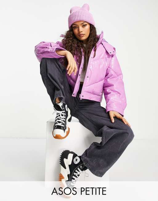 Chaqueta de plumas corta lila de vinilo de ASOS DESIGN Petite