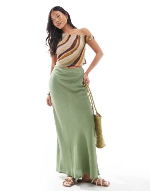 Falda larga caqui de corte al bies de mezcla de lino de ASOS DESIGN Petite