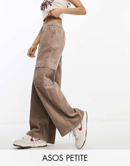 Pantalones cargo color galleta sin cierres de pana de ASOS DESIGN Petite