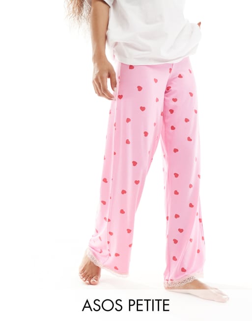 Pantalones de pijama rosas con estampado de corazones de tejido supersuave Mix & Match de ASOS DESIGN Petite