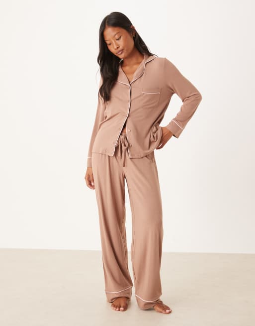 Pijama marrón de manga larga de tejido muy suave de ASOS DESIGN Petite