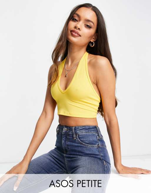 Top corto amarillo con cuello halter de ASOS DESIGN Petite
