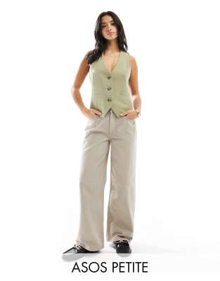 Vaqueros dad beis de pernera ancha de ASOS DESIGN Petite