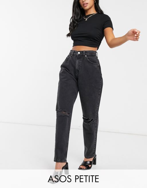 Vaqueros Mom de talle alto holgados con rotos en negro desgastado de ASOS DESIGN Petite