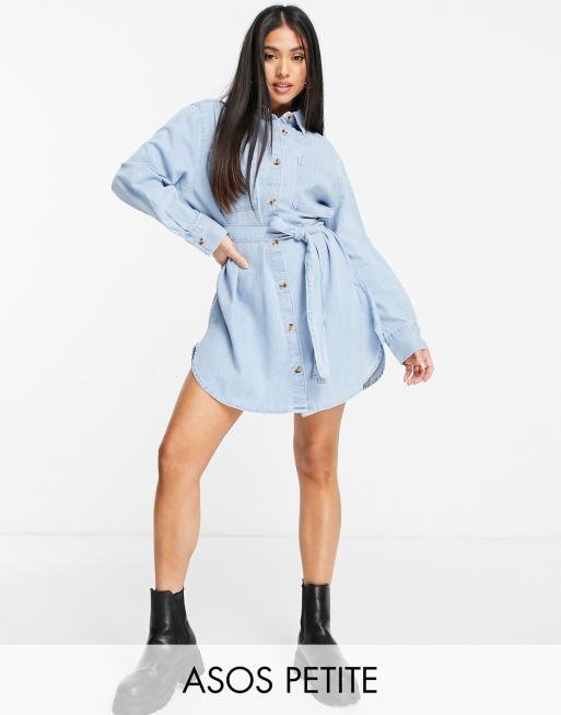 Vestido camisero extragrande con lavado medio y cinturón de denim suave de ASOS DESIGN Petite