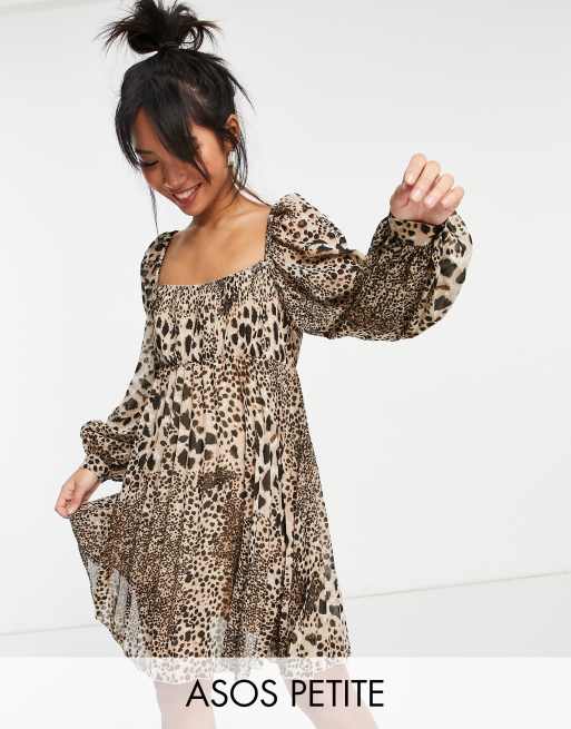 Vestido corto beis estilo skater de escote cuadrado con diseño plisado y estampado de leopardo de ASOS DESIGN Petite