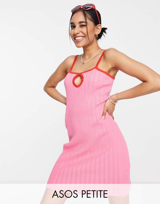 Vestido corto con detalle de abertura y ribetes en contraste de punto de ASOS DESIGN Petite