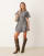 Vestido corto gris a rayas de manga corta con raya diplomática y detalle fruncido con lazada en la cintura de ASOS DESIGN Petite