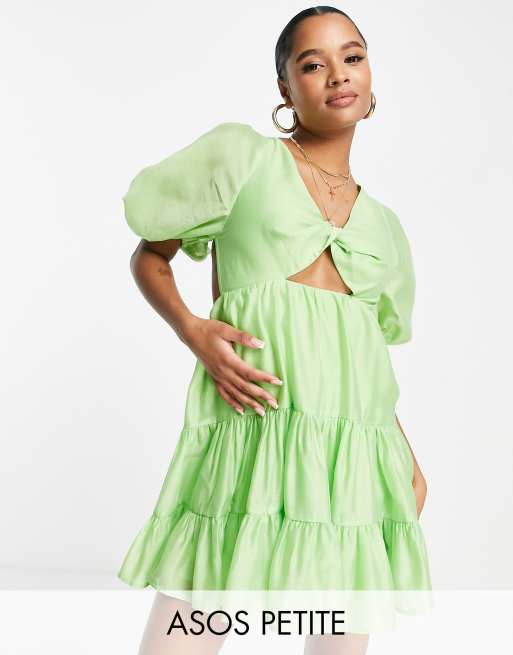 Vestido corto verde escalonado con detalle retorcido en la parte delantera de voile de ASOS DESIGN Petite