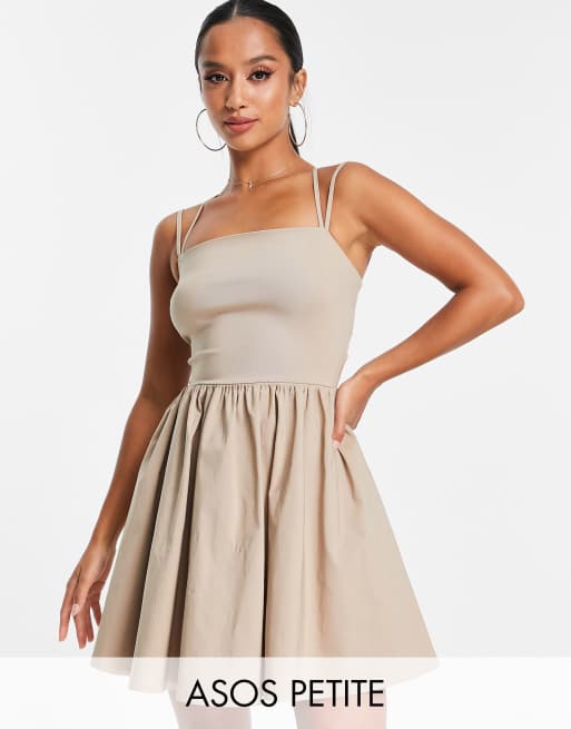 Vestido de graduación corto estructurado con diseño de tiras en la espalda de ASOS DESIGN Petite