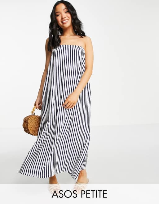Vestido de verano largo palabra de honor a rayas azul marino y blancas con bolsillos de ASOS DESIGN Petite