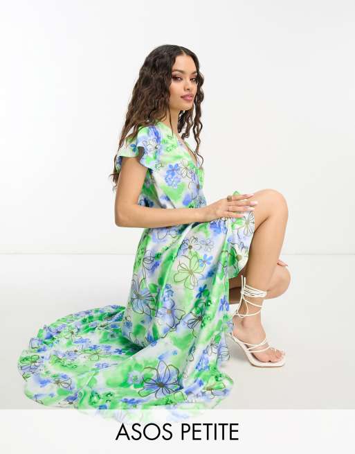 Vestido largo blanco cruzado con estampado floral y detalle de volantes de satén de ASOS DESIGN Petite