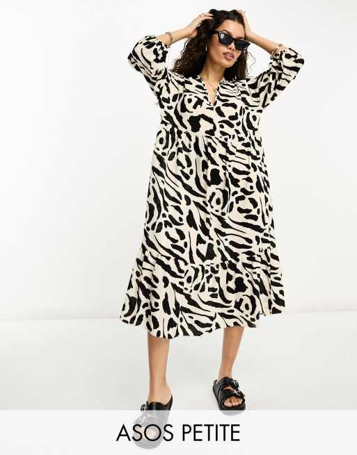 Vestido midi amplio y cómodo con estampado monocromático abstracto de ASOS DESIGN Petite