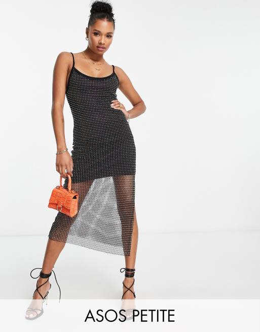 Vestido midi negro de tirantes con diseño de pedrería de ASOS DESIGN Petite