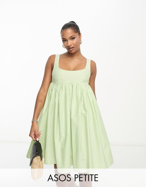 Vestido veraniego corto verde manzana de corte amplio con escote cuadrado de ASOS DESIGN Petite