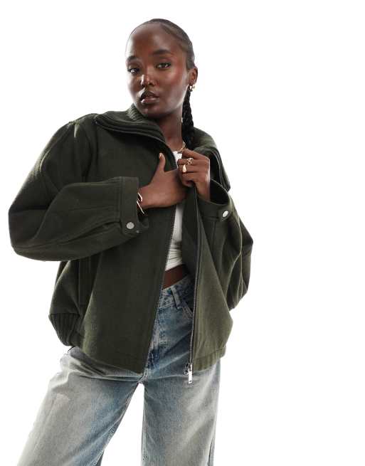Abrigo corto caqui con solapas de punto de ASOS DESIGN Tall