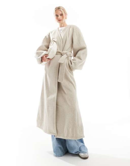 Abrigo de vestir largo color avena de tejido ligero de ASOS DESIGN Tall