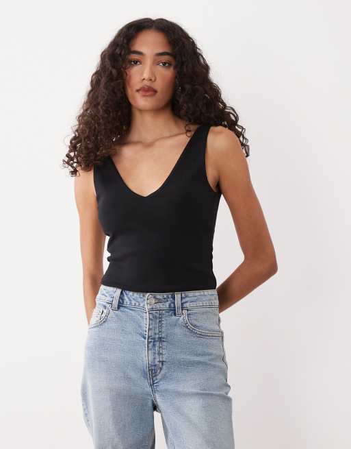 Body negro con cuello de pico de punto compacto de algodón de ASOS DESIGN Tall