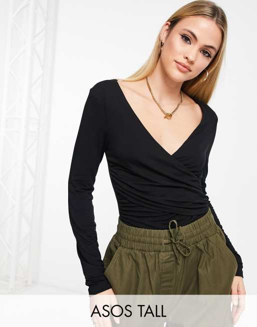 Body negro cruzado de manga larga de ASOS DESIGN Tall