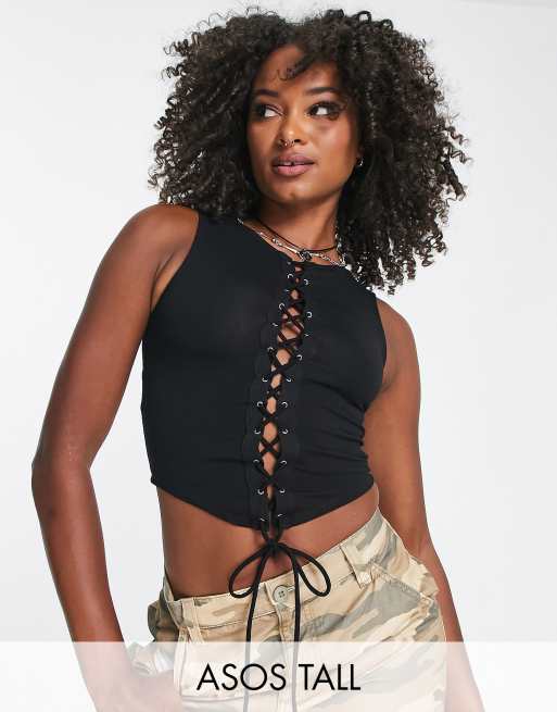 Camiseta corta negra sin mangas con cordones en la parte delantera de ASOS DESIGN Tall