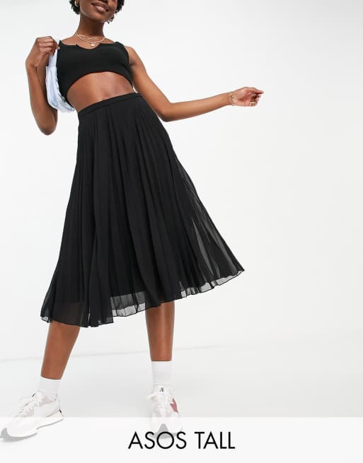 Falda midi negra con diseño plisado de ASOS DESIGN Tall