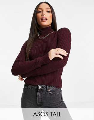 Jersey rojo oscuro de cuello vuelto de canalé de ASOS DESIGN Tall