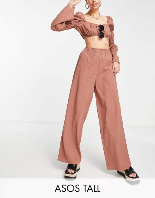 Pantalones de playa marrones de pernera ancha de sirsaca de ASOS DESIGN Tall (parte de un conjunto)