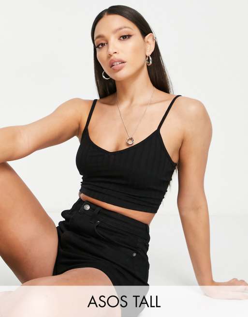 Top corto negro de tirantes de canalé de ASOS DESIGN Tall