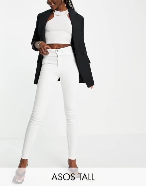 Vaqueros blanco óptico de talle alto y corte pitillo Ridley de ASOS DESIGN Tall