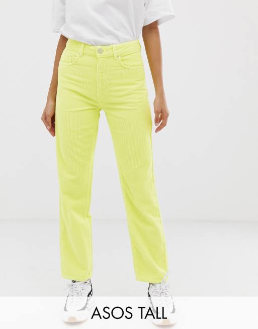 Vaqueros con pernera recta de pana en amarillo neón Florence Authentic de ASOS DESIGN Tall